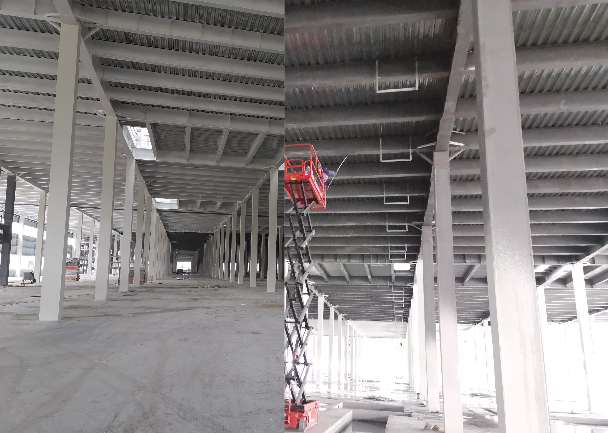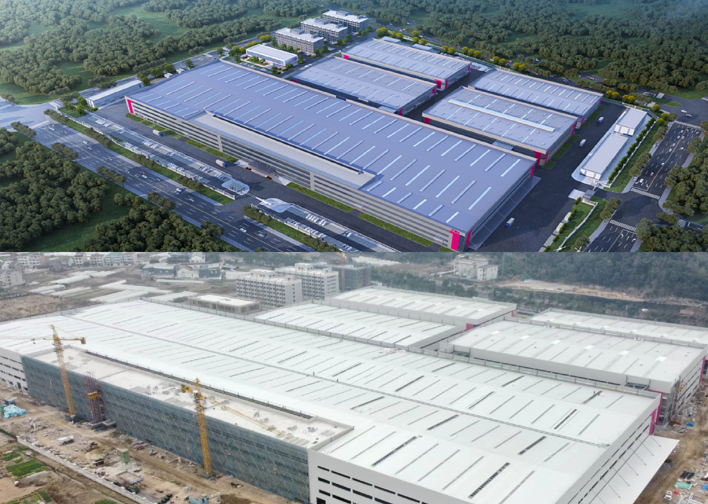 总建筑面积230438.25,建筑密度55.88%,容积率1.41%,绿化率5.81%。厂区建设5栋生产厂房(1F车架车间、2F注塑烤漆车间、2F装配车间及2栋1F标准厂房)及17栋配套设施(包括-1/1F联合站房、-1/2F污水处理站、1F仓库4栋、连廊3个、6F宿舍3栋、2F食堂1栋、门卫室4个),合计22栋,其中5栋生产厂房建筑面积201260.81㎡,17栋配套设施建筑面积29177.44㎡。